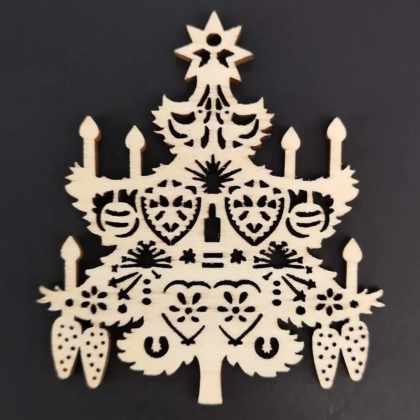 AMADEA Drevená ozdoba farebná stromček so sviečkami 9 cm