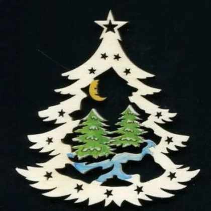 AMADEA Drevená ozdoba farebná stromček s kostolom 9 cm