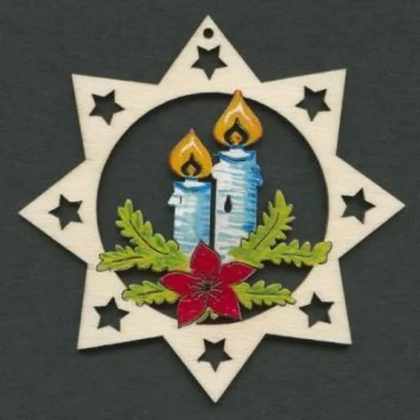 AMADEA Drevená ozdoba farebná hviezda so sviečkami 9 cm