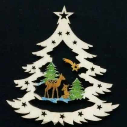 AMADEA Drevená ozdoba farebná stromček so srnkami 6 cm