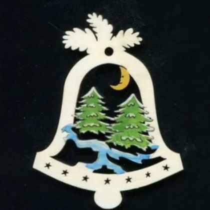 AMADEA Drevená ozdoba farebná zvonček so stromami 6 cm