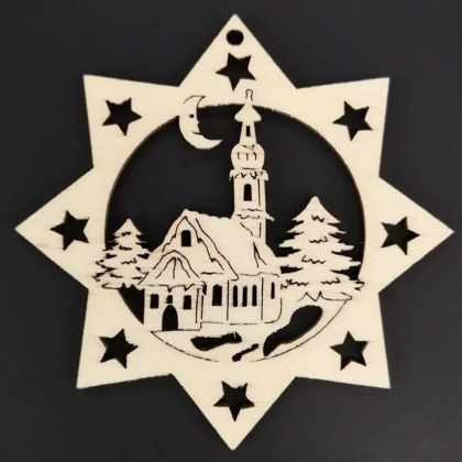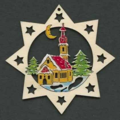 AMADEA Drevená ozdoba hviezda s kostolom 6 cm