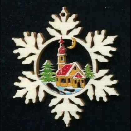 AMADEA Drevená ozdoba farebná vločka s kostolom 6 cm