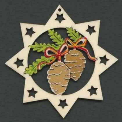 AMADEA Drevená ozdoba farebná hviezda so šiškami 6 cm