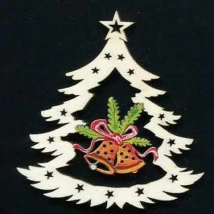 AMADEA Drevená ozdoba farebná stromček so zvončekmi 9 cm