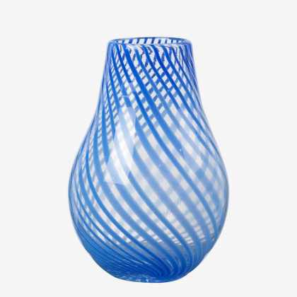 Broste Copenhagen Váza Ada Cross Stripe modrá 22cm
