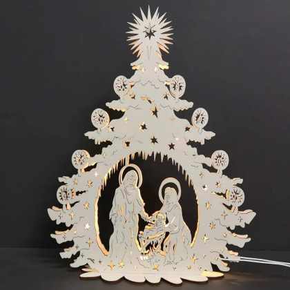 AMADEA Drevený svietiaci portál strom vianočný s betlehemom, 46x36x10 cm
