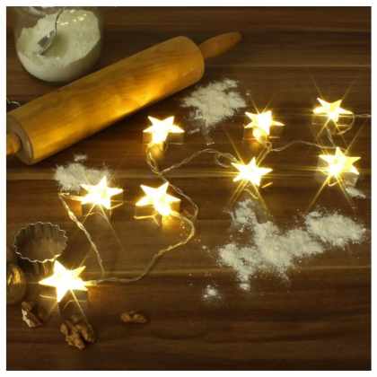 SOLIGHT LED vianočná reťaz – hviezdy, 1,5m, 10 LED, 2 x AA, teplé svetlo