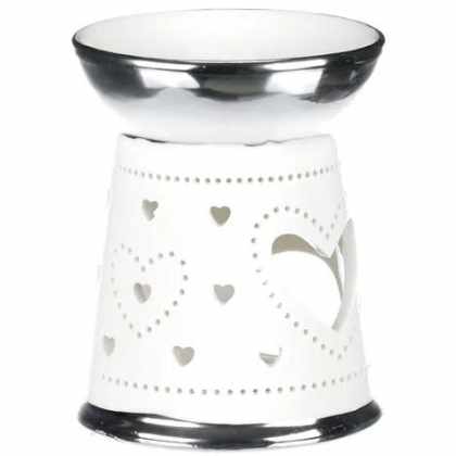 Aróma lampa, porcelánová. Strieborno-biela farba.