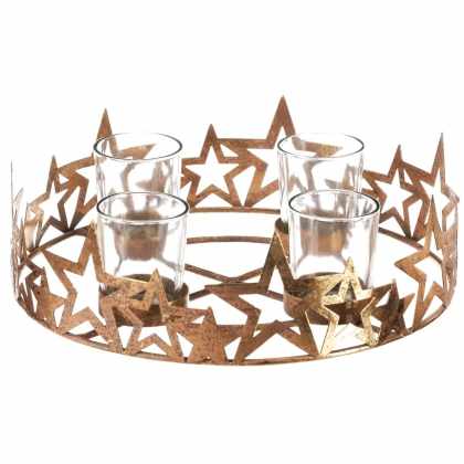 Adventný svietnik Hviezdy, zlatá, kov, pr. 25 cm