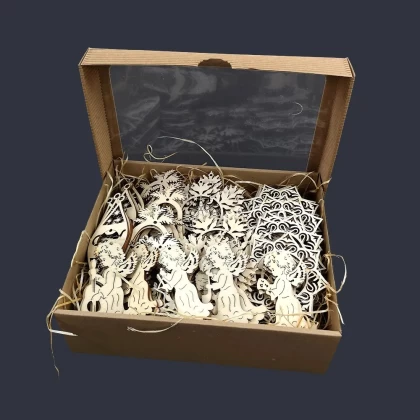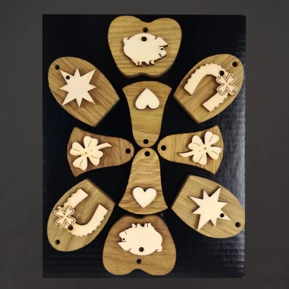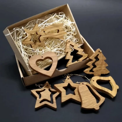 AMADEA Vianočný set 8 drevených ozdôb z masívu + krabička