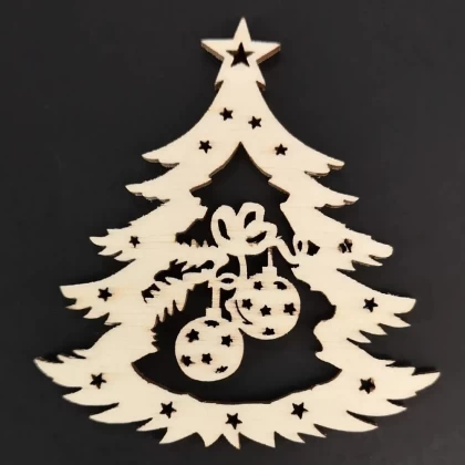 AMADEA Drevená ozdoba stromček s guľami 6 cm
