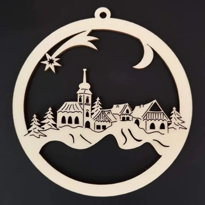 AMADEA Drevená ozdoba gule s dedinkou 11 cm