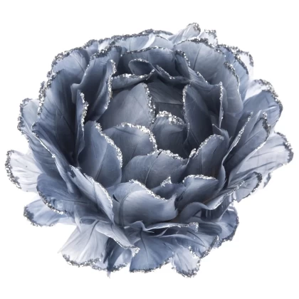 Vianočná ozdoba Sivomodrý kvet 10 cm, perie, so štipcom