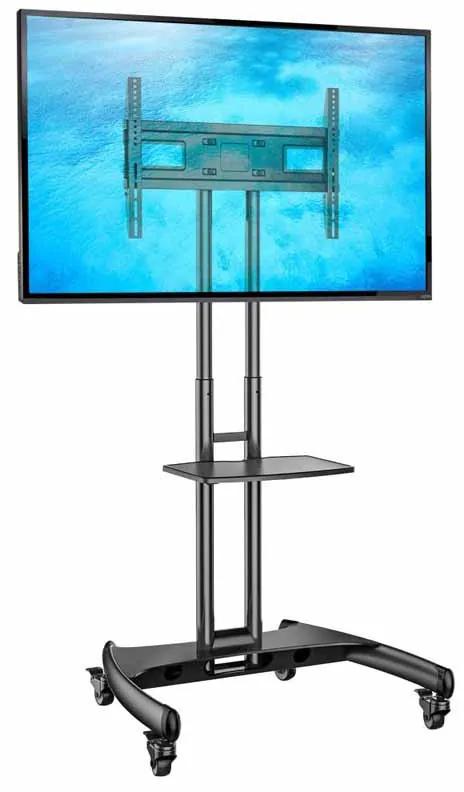 Kvalitný stojan na televíziu s pojazdom a výškovým nastavením. Moderný dizajn s perfektnou stabilitou a ľahké rolovanie je zárukou maximálnej spokojnosti. Odporúčame aj náročnejším zákazníkom. Súčasťou balenia je aj polica na príslušenstvo. VESA štandard (rozstup montážnych otvorov) 100×100 až 600×400 mm. · Stojan na televíziu môžete výškovo nastaviť v rozmedzí 1050 až 1500 mm. · Rokmi preverená konštrukcia stojana je založená na kvalitnej podstave, so štyrmi kolieskami s brzdou, ktorá držiaku dodáva vysokú stabilitu a teda aj bezpečnosť. · Stojan disponuje skrytým vedením kabeláže, pomocou ktorého zaistíte čistý vzhľad. Navyše je osadený policou pre príslušenstvo. · Jednoduchú inštaláciu Vám dopraje inštalačný materiál, ktorý je súčasťou balenia.