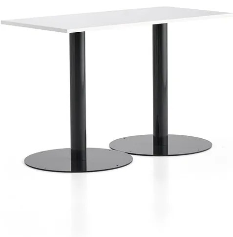 Elegantný stôl s dvojitým podstavcom a s odolnou, ľahko udržiavateľnou doskou. Ponúka možnosť ukotvenia do podlahy, ktoré sa odporúča na zvýšenie stability a bezpečné umiestnenie stola. Tento jednoduchý a štýlový stôl s podstavcom je dokonalým doplnkom pohodlného priestoru na posedenie. Obdĺžniková doska z vysokotlakového laminátu ponúka hladký, tvrdý a odolný povrch. Vďaka tomuto ľahko udržiavateľnému laminátu môžete rýchlo zotrieť nečistoty a kruhy od šálok kávy. Základňa v tvare stĺpa má veľkú kruhovú podnož s otvormi, ktoré umožňujú priskrutkovať stôl k podlahe, čo odporúčame na zvýšenie stability. Kombinujte ho s vysokými barovými stoličkami a vytvorte malú elegantnú zostavu, kde môžete sedieť alebo stáť. Vďaka minimalistickému dizajnu je stôl vhodný do väčšiny prostredí, ako sú salóniky, recepcie, kaviarne a kancelárie.