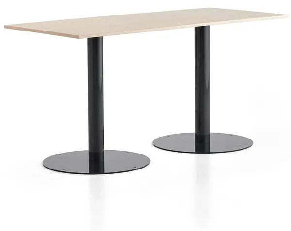 Elegantný stôl s dvojitým podstavcom a s odolnou, ľahko udržiavateľnou doskou. Ponúka možnosť ukotvenia do podlahy, ktoré sa odporúča na zvýšenie stability a bezpečné umiestnenie stola. Tento jednoduchý a štýlový stôl s podstavcom je dokonalým doplnkom pohodlného priestoru na posedenie. Obdĺžniková doska z vysokotlakového laminátu ponúka hladký, tvrdý a odolný povrch. Vďaka tomuto ľahko udržiavateľnému laminátu môžete rýchlo zotrieť nečistoty a kruhy od šálok kávy. Základňa v tvare stĺpa má veľkú kruhovú podnož s otvormi, ktoré umožňujú priskrutkovať stôl k podlahe, čo odporúčame na zvýšenie stability. Kombinujte ho s vysokými barovými stoličkami a vytvorte malú elegantnú zostavu, kde môžete sedieť alebo stáť. Vďaka minimalistickému dizajnu je stôl vhodný do väčšiny prostredí, ako sú salóniky, recepcie, kaviarne a kancelárie.