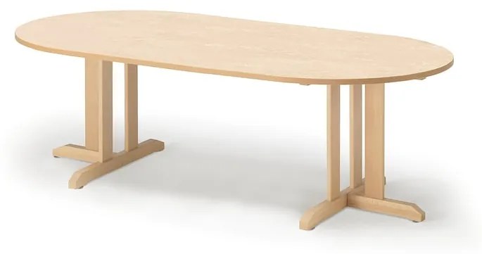 Stôl s podnožou z brezového masívu, zaoblenými rohmi a s doskou stola vyrobenej z hluk tlmiaceho a ekologického linolea. Stôl Kupol má stabilný a robustný podstavec z brezového masívu, ktorý je bez okraja. Doska stôl nemá žiadne ostré rohy alebo hrany, takže je tou najlepšou voľbou pre škôlky, školy, jedálne a iné prostredia, kde sú prítomné deti. Stôl je obdĺžnikový so zaoblenými rohmi. Podstavec uľahčuje čistenie okolo alebo pod stolom a ponúka dostatok priestoru pre každého, kto sedí okolo neho. Povrch stola je pokrytý zvuk pohlcujúcim a ekologickým linoleom. K dispozícií v niekoľkých farbách. Linoleum sa vyrába z prírodných a obnoviteľných surovín. Linoleum je extrémne odolné, ľahko sa udržiava a zároveň má vynikajúce zvuk tlmiace vlastnosti. Stôl Kupol je preto vhodný do prostredie, kde hladina hluku je obvykle veľmi vysoká, ako napríklad v triedach či jedálňach.