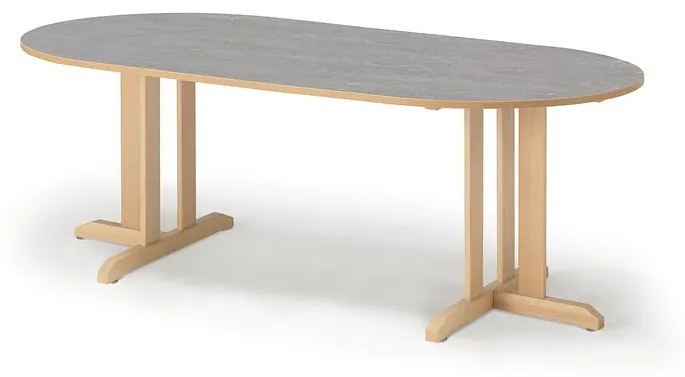 Stôl s podnožou z brezového masívu, zaoblenými rohmi a s doskou stola vyrobenej z hluk tlmiaceho a ekologického linolea. Stôl Kupol má stabilný a robustný podstavec z brezového masívu, ktorý je bez okraja. Doska stôl nemá žiadne ostré rohy alebo hrany, takže je tou najlepšou voľbou pre škôlky, školy, jedálne a iné prostredia, kde sú prítomné deti. Podstavec uľahčuje čistenie okolo alebo pod stolom a ponúka dostatok priestoru pre každého, kto sedí okolo neho. Povrch stola je pokrytý zvuk pohlcujúcim a ekologickým linoleom. Vyrába sa z prírodných a obnoviteľných surovín. Linoleum je extrémne odolné, ľahko sa udržiava a zároveň má vynikajúce zvuk tlmiace vlastnosti. Stôl Kupol je preto vhodný do prostredie, kde hladina hluku je obvykle veľmi vysoká, ako napríklad v triedach či jedálňach.