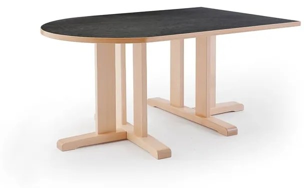 Domů > Obchod > Stôl KUPOL, polovičný ovál, 1400x800x600 mm, linoleum – tmavošedá, breza