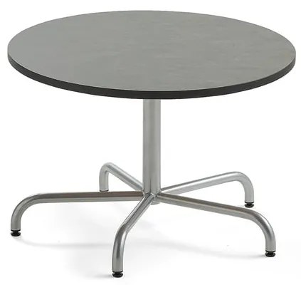 Cenovo dostupný stôl s odolnou doskou z linolea pohlcujúceho zvuk a zaobleným nohami. Robustný stôl je navrhnutý tak, aby vydržal. Je ideálnou voľbou do jedální a oddychových miestností. Ideálny stôl do jedální, ktorý sa hodí aj do oddychových miestností. Doska stola je vyrobená z ekologického linolea, ktoré účinne tlmí zvuk. To znamená, že buchot tanierov a príborov nebude prispievať k vysokej hladine hluku v rušnej jedálni. Povrch je odolný a ľahko sa udržiava. Robustný rám je opatrený práškovým lakom v decentnej strieborno-šedej farbe. Vďaka robustnej výstuži medzi nohami je stôl veľmi stabilný. Nohy sú pri základni zahnuté. To uľahčuje umývanie podlahy, pretože sa pod stôl ľahšie dostanete. Stôl môžete skombinovať so stoličkami z našej širokej ponuky, a vytvoriť tak dokonalý set!