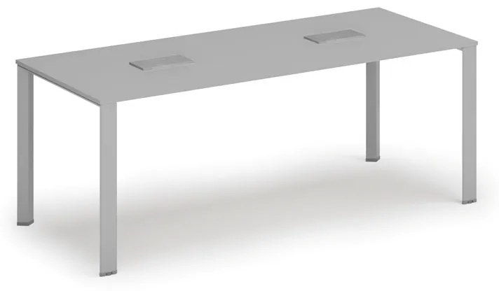 · stoly s nadčasovým dizajnom pre moderné a reprezentačné kancelárie a rokovacie miestnosti · stôl je veľmi stabilný a robustný, je možné kombinovať s nábytkom v rovnakom dezéne radu PRIMO · stolová doska je vyrobená z laminovanej drevotriesky s hrúbkou 18 mm, hrany sú olepené odolnou ABS hranou · povrchová úprava kovových podnoží práškovým vypaľovacím lakom v odtieni striebrosivá alebo čierna · dodáva sa v demontovanom stave · ku komfortu počas rokovaní prispievajú aj vstavané zásuvkové boxy, ktoré slúžia na napájanie kancelárskej techniky a mobilných zariadení popr. na prenos dát Zásuvkový box TYP III – výklopný, 2x zásuvka, 2x port USB dáta, 2x RJ45 port · výklopná zásuvková lišta vhodná na inštaláciu do pracovnej dosky, stolov ale aj nábytku · skvele zapadne do kancelárskych či konferenčných miestností · obsahuje okrem klasických zásuviek aj praktické dátové porty USB na prenos dát (informácií) a sieťové RJ-45 porty na pripojenie k LAN sieti · materiál: zliatina zinku + železo · Rozmery spodnej časti: 224 x 109 x 65 mm (dĺžka / šírka / výška) · Vonkajšie rozmery: 266 x 133 x 69 mm (po otvorení krytov 266 x 133 x 112 mm) · Montážny otvor: 225 x 110 mm Jeden zásuvkový box obsahuje: · 2x zásuvka (francúzsky typ) 110-240V 50/60Hz 10A · 2x port Ethernet (RJ -45) cat5E · 2x USB 2.0 port dátový