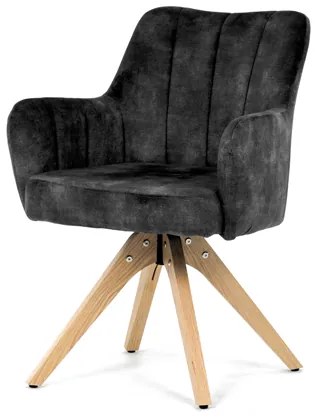 Elegantní čalouněná židle od značky Autronic zaujme na první pohled svou černou sametovou látkou, která dodává interiéru moderní šmrnc. Masivní nohy v přírodní barvě vytvářejí stabilní základ a skvěle harmonizují s celkovým designem. Komfortní područky zajistí pohodlí při sezení. Navíc, integrovaný 360° otočný mechanismus poskytuje maximální flexibilitu a pohybový komfort. Ideální volba pro stylové i funkční bydlení.