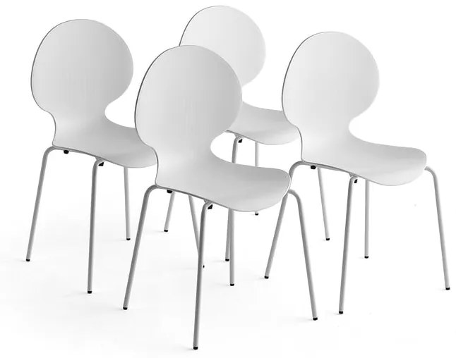 Zostava štyroch štýlových jednofarebných stoličiek. Sú ideálne pre jedálne alebo iné verejné priestory. Sedadlo aopierka chrbta sú vyrobené zjedného kusa odolného polypropylénu. Stoličky sa dajú stohovať. Cenovo dostupné stoličky pre jedálne a iné veľmi frekventované verejné priestory, kde je potrebných veľa miest na sedenie. Stoličky majú moderný jednofarebný dizajn, vďaka čomu sa ľahko kombinujú sinými kusmi nábytku. Sedadlo aopierka chrbta sú vyrobené zjedného kusa lisovaného odolného polypropylénu a ľahko sa udržiavajú v čistote. Štíhly oceľový rúrkový rám je pevný a vyzerá dobre takmer v každom prostredí. Sedadlo má mierne zaoblenú prednú hranu, aby sa znížil tlak na zadnú časť stehien a uľahčila sa cirkulácia krvi v nohách, čím sa zabezpečuje pohodlné sedenie. Stoličky môžete ľahko stohovať po ôsmich kusoch, čo zjednodušuje skladovanie a uľahčuje upratovanie.