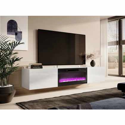 TV skrinka Koda 200 s krbom, Farby: biela / biely lesk, Krb: čierny
