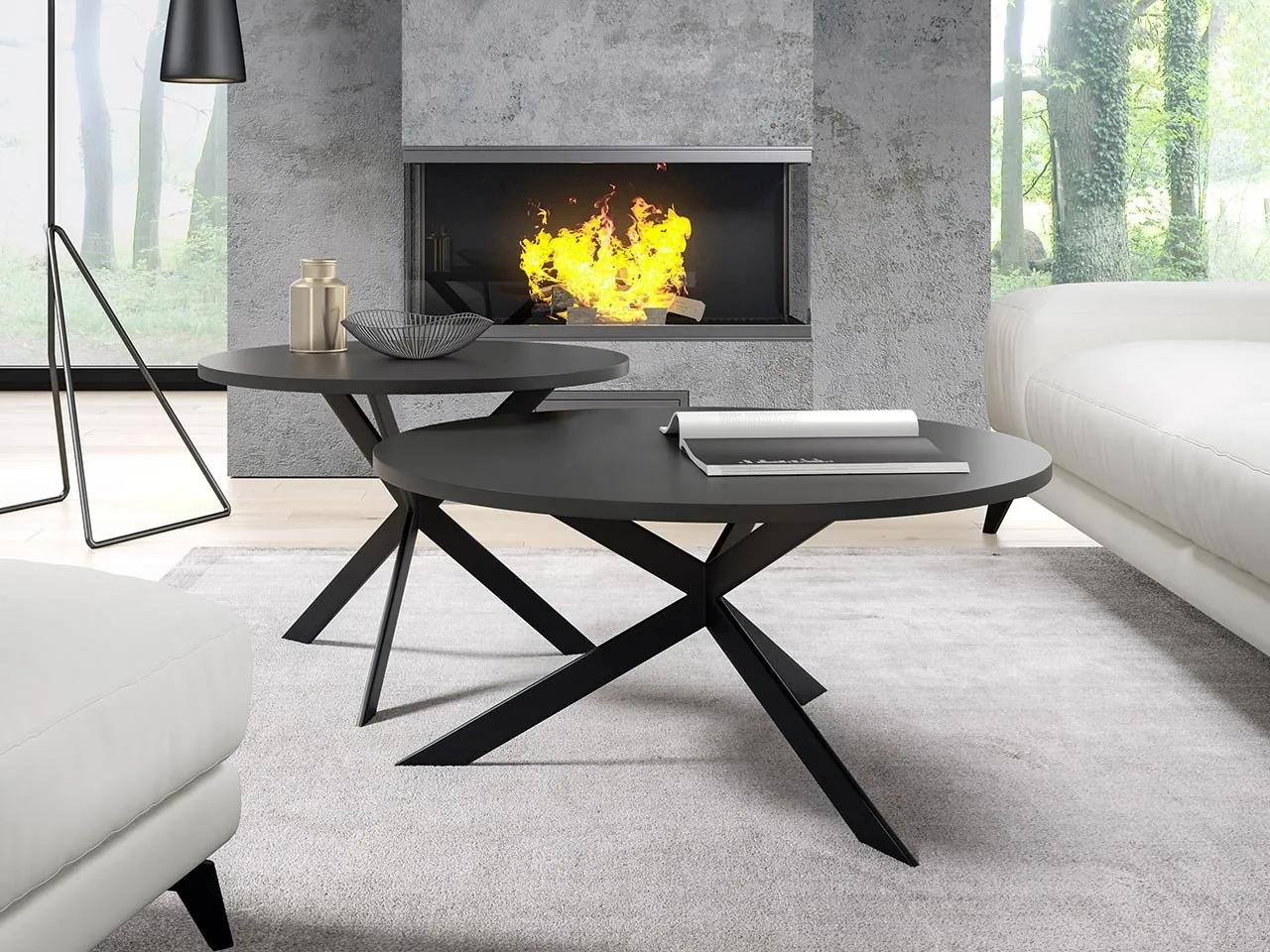 Rozmery:Konferenčný stolík veľký: priemer: 75 cm, výška: 36 cm,Malý konferenčný stolík: priemer: 58 cm, výška: 42 cmPrevedenie:Hrúbka laminovanej drevotriesky 18 mm,ABS lemovanie hrán,rám z ocele, práškovo lakovaný čiernou farbou,maximálne zaťaženie: 80 kg,cena sa týka 2 stolovZáruka: 24 mesiacov