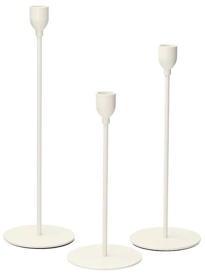 Súprava bielych svietnikov z kovu.