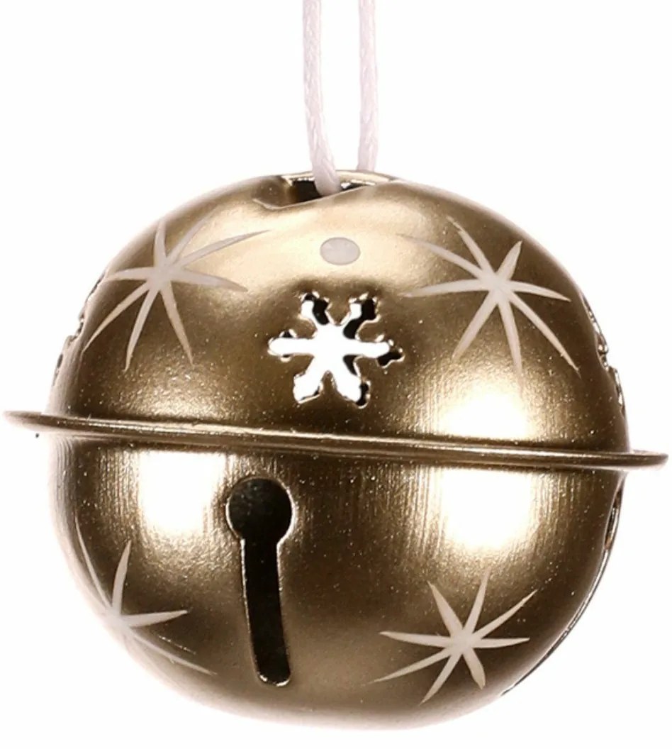 Vytvorte si nádherné vianočné prostredie s týmito stredne veľkými kovovými rolničkami na povrázku v champagne farbe. Rolničky sú známe tým, že po zatrasení sa rozoznejú svojim charakteristickým zvukom, ale v tomto prípade nám poslúžia hlavne ako štýlová závesná ozdoba.Dekoratívne motívy snehových vločiek a hviezdičiek na každej rolničke, nám pripomínajú, že súčasne s Vianocami, nastal čas zimy. Umiestnite ich klasicky na vianočný stromček alebo kamkoľvek inam, kde si prajete navodiť tú pravú sviatočnú atmosféru.