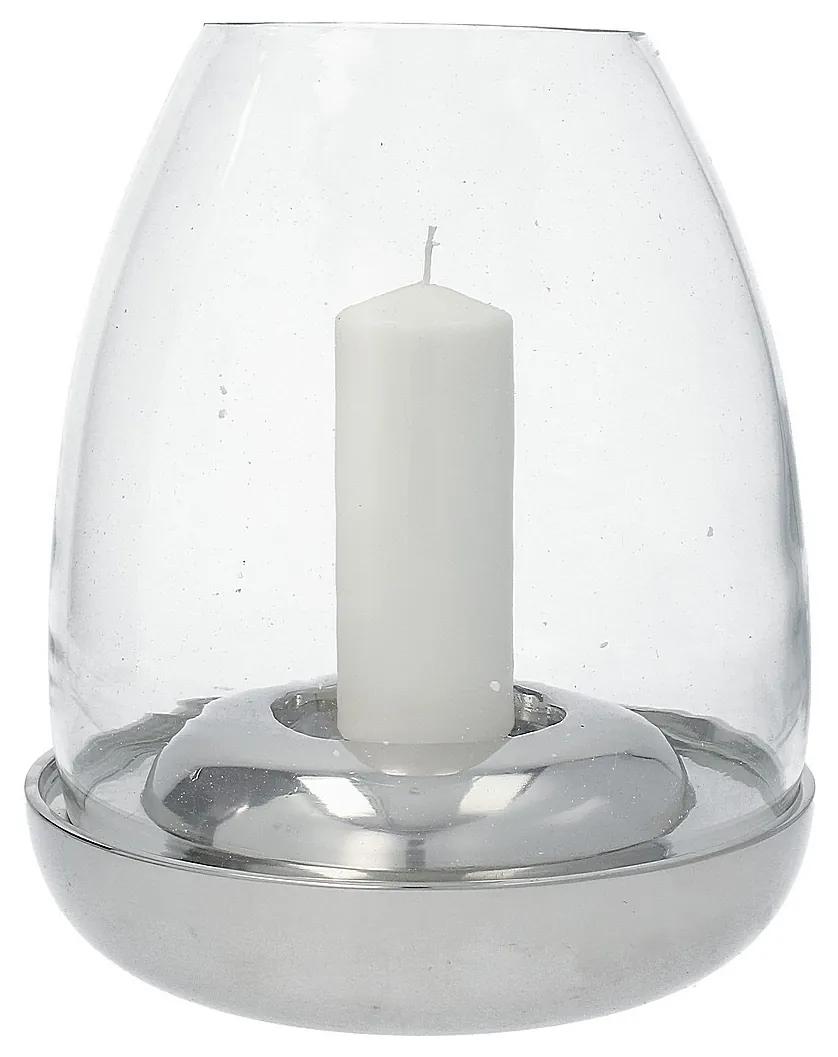 Mimoriadne elegantný svietnik z poniklovaného hliníka a skla.Určený na silnú sviečku.