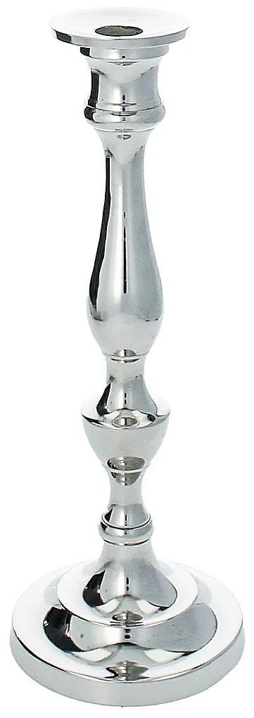 Elegantný, nadčasový svietnik v striebornej farbe s okrúhlou základňou. Je vyrobený z poniklovaného hliníka a vďaka svojej farbe sa krásne hodí k akejkoľvek dekorácii stola. Detail, ktorý vám pomôže vytvoriť jedinečnú atmosféru vo vašom interiéri. Ideálny na dlhú sviečku.