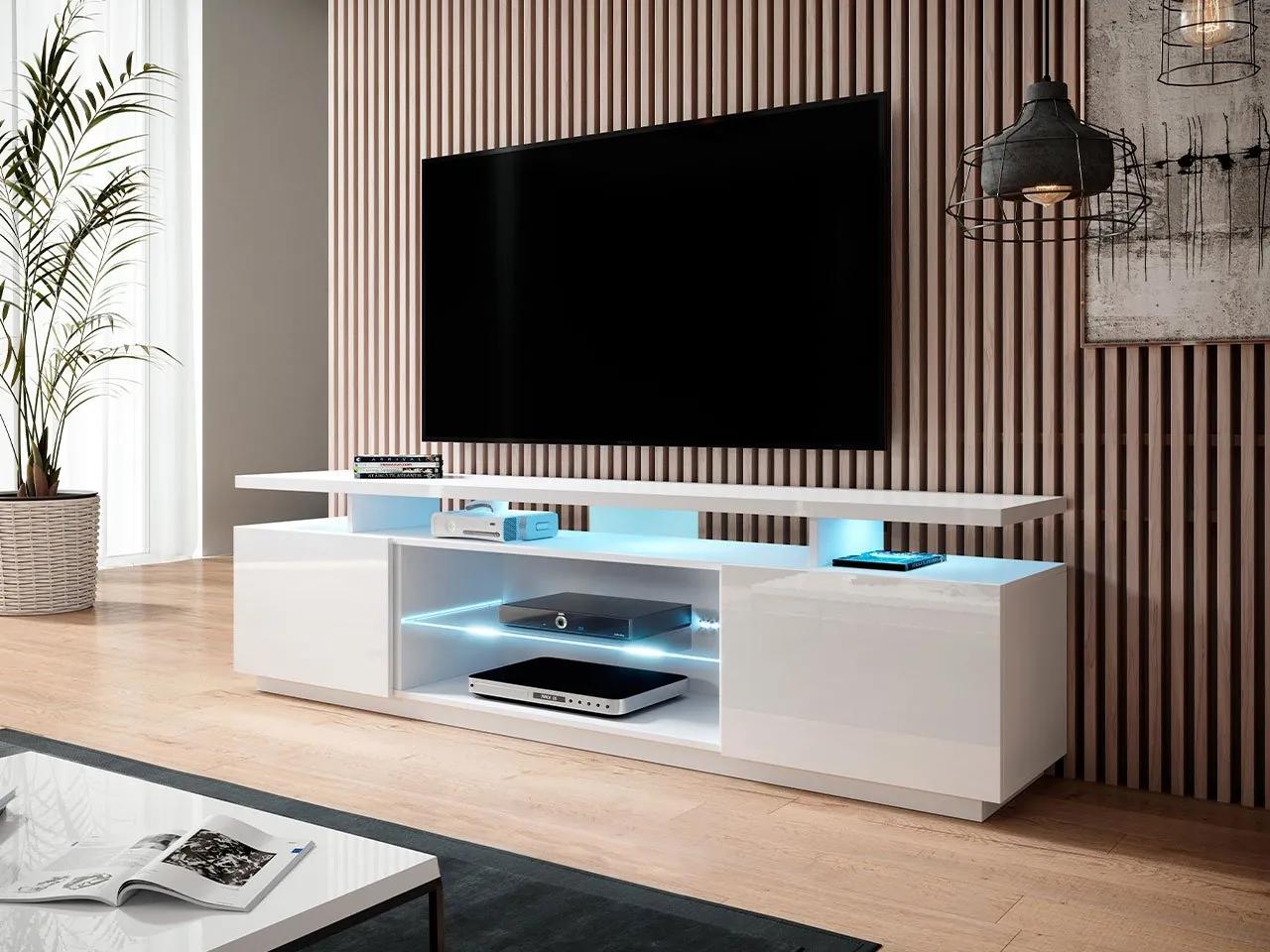 Televízor v obývačke je takmer nutnosťou. Preto potrebuje aj nezvyčajné nastavenie, ktoré umožní jeho správne zobrazenie. TV skrinka Aniceto príde vhod najmä v moderných aranžmánoch.Tento model je vybavený priestrannými policami, ktoré usporiadajú všetko príslušenstvo alebo elektronické vybavenie.TV skrinka Aniceto je vyrobená z kombinácie odolných nábytkových dosiek: laminovanej a MDF, ktorá je opláštená PVC fóliou zaisťujúcou elegantný lesk. Tento kus nábytku je dostupný vo viacerých farebných prevedeniach, vďaka čomu skrinku jednoducho zladíte k zariadeniu vašej obývačky.Rozmery:šírka: 180 cm,výška: 56 cm,hĺbka: 40 cmPrevedenie:korpus: laminovaná doska s hrúbkou 16 mm,fronty: 16 mm hrubá doska MDF potiahnutá vysoko lesklou PVC fóliou,doska stola: MDF doska s hrúbkou 32 mm potiahnutá vysoko lesklou PVC fóliou,ABS ráfik (telo) a fóliovaný (predné, horné),pánty: cín 35 mm, kov,predné časti siahajú nad hornú časť tela, sú otvorené do strán,nohy: podstavec,biele LED osvetlenie ako doplnková výbava za príplatokZáruka: 24 mesiacov