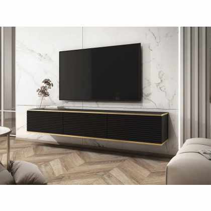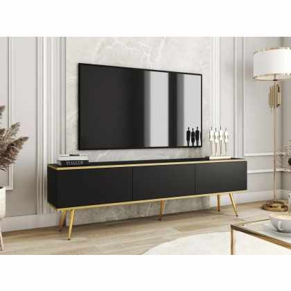 Tv stolík/skrinka Maramax 200 4D, Farby: čierna + čierna + zlatá