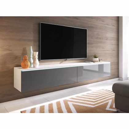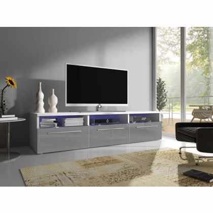 TV skrinka Dlone 180, Farby: biela / šedý lesk, Osvetlenie: osvetlenie LED biele