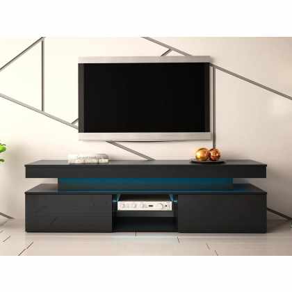 TV stolík/skrinka s LED osvetlením Lestirola 2D 190, Farba: čierna / čierny lesk