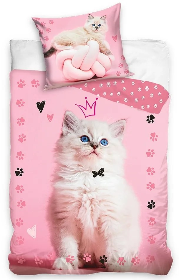 Tiptrade Bavlnené obliečky Mačička Princezná, 140 x 200 cm, 70 x 90 cm