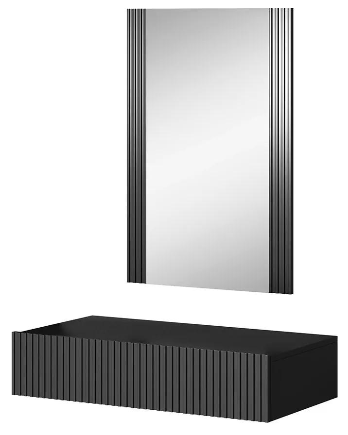 Domáca kozmetická zóna sa nezaobíde bez toaletného stolíka so zrkadlom Tilderi Grey. Tento štýlový model má všetko, čo najviac potrebujete. Je vybavený praktickou zásuvkou, do ktorej môžete uložiť svoje kozmetické doplnky. Na praktickú dosku stolíka môžete umiestniť aj časť svojej kozmetiky. Zrkadlo je dokonalým doplnkom na nanášanie make-upu alebo úpravu účesu.Je to model, ktorý zaujme svojím dizajnom. Viditeľné skosené hrany na oboch stranách sklenenej plochy zrkadla a prednej časti skrinky dodávajú tomuto kusu nábytku osobitý charakter. Toaletný stolík nemá žiadne úchyty. Môžete ho ľahko otvoriť vďaka prvku, ktorý mierne vyčnieva nad hornú časť. Rozmery:Toaletný stolík: Šírka: 80 cm, výška: 17 cm, hĺbka: 42 cm,Zrkadlo: šírka: 54 cm, výška: 80 cm, hĺbka: 2 cmPrevedenie:korpus: matná laminovaná doska s hrúbkou 16 mm,Predná strana: 16 mm laminovaná MDF doska pokrytá 16 mm PVC fóliou s viditeľnými výrezmi,Lakovaná doska HDF 2,5,ABS hrany,spodné lišty,bez úchytiek: predné zarážky nad pracovnou doskouZáruka: 24 mesiacov
