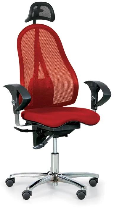 · kancelárska stolička EXETER so sedadlom potiahnutým látkou a operadlom zo sieťoviny · mechanika s permanentnym kontaktom s chrbtom pre zdravé sedenie · balančny systém pre aktívny pohyb chrbtových svalov pri sedení · plastové výškovo nastaviteľné podrúčky s možnosťou nastavenia lakťových opierok nahor a nadol · sedák so šírkou 51 cm a hĺbkou 42 cm, operadlo s nastaviteľnou výškou 54 – 60 cm · oceľový kríž, nosnosť 150 kg · kolieska na mäkké podlahy (napr. koberce, linoleum atď.) · úhlovo a výškovo nastaviteľná hlavová opierka pre ideálnou oporu