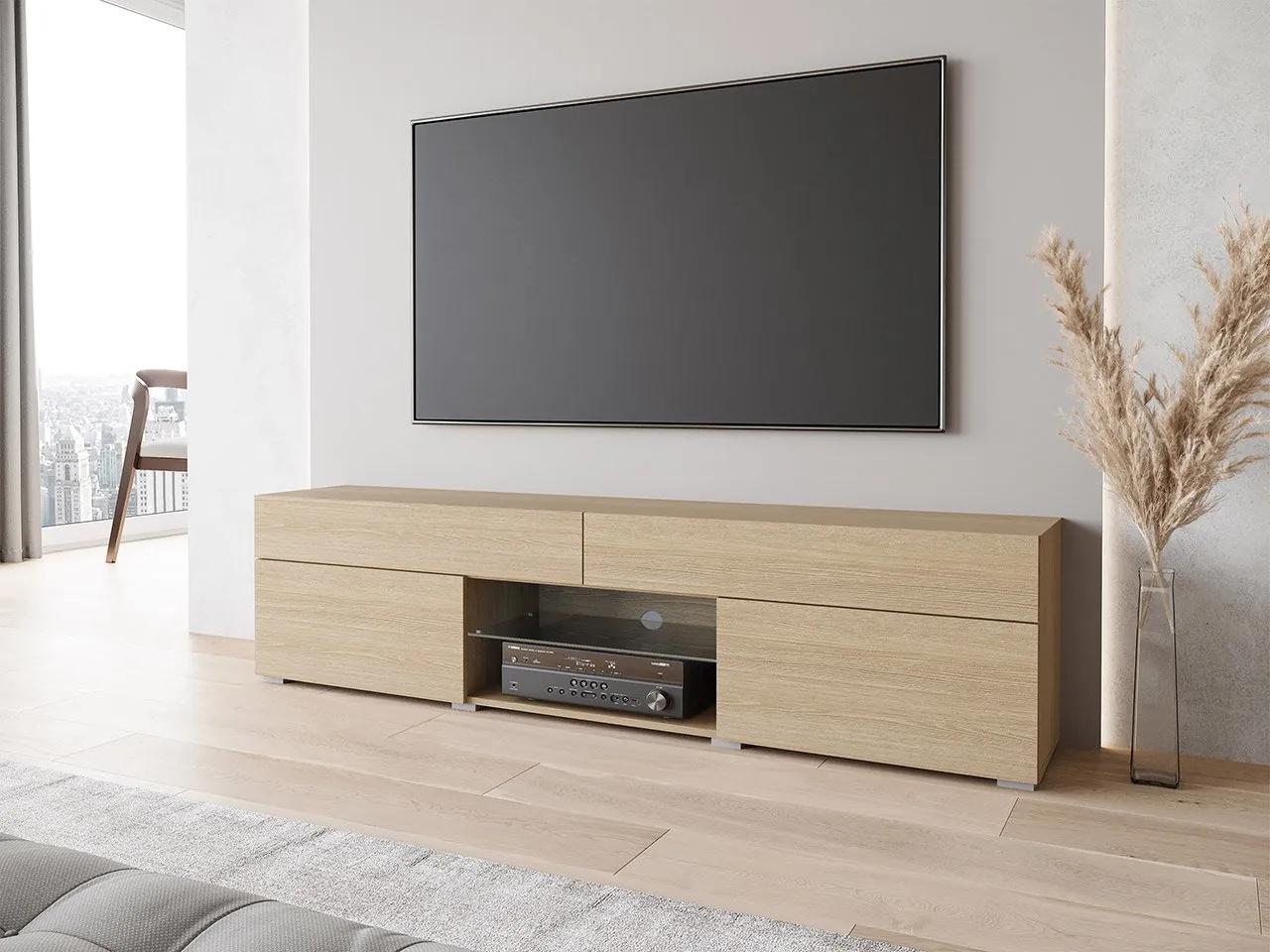 TV skrinka Mrentu sa vyznačuje minimalistickým dizajnom a moderným farebným prevedením. Je vybavená dvoma zásuvkami v hornej časti, dvoma skrinkami na vonkajších stranách a sklenenou policou uprostred, na ktorú môžete umiestniť set top box. Okrem toho si môžete vybrať LED osvetlenie, ktoré osvetlí policu.Konštrukcia tejto TV skrinky je založená na nízkych hliníkových nohách z plastu. Okrem toho nemá tradičné rukoväte, ktoré boli nahradené vyčnievajúcimi čielkami.Rozmery:šírka: 180 cm,výška: 45 cm,hĺbka: 35 cmPrevedenie:telo z laminovanej dosky (matnej) s hrúbkou 15 mmpredná časť:lesk – POLYGLOSS doska 15mmmatná – laminovaná doska 15 mmpredné strany pokryté ABS lemom, ostatné hrany pokryté papierovým lemom2 cm vysoké plastové nožičky vo farbe hliníkažiadne úchyty – skrinka sa otvára vyčnievajúcimi čielkamiLED osvetlenie (studená biela) ako dodatočná možnosť za príplatok,mini pánty,guľôčkové kolajničky,tvrdené sklo s hrúbkou 4 mm,Záruka: 24 mesiacov