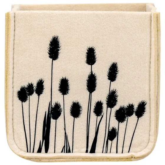 Plstený multifunkčný úložný košík s čiernym motívom na béžovom podklade. Plstený materiál je ľahký a pritom odolný pri používaní. Úložný kôš ponúka nekonečné možnosti využitia. Môžete doň schovať drobnosti alebo použiť ako štýlový obal na črepník. ROZMERY14x14x14 cm MATERIÁLPlsť z recyklovaných PET plastových fliaš