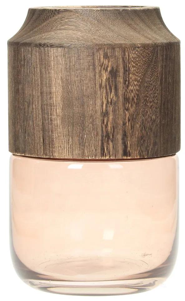 Váza zo skla a dreva v prírodnej farbe.
