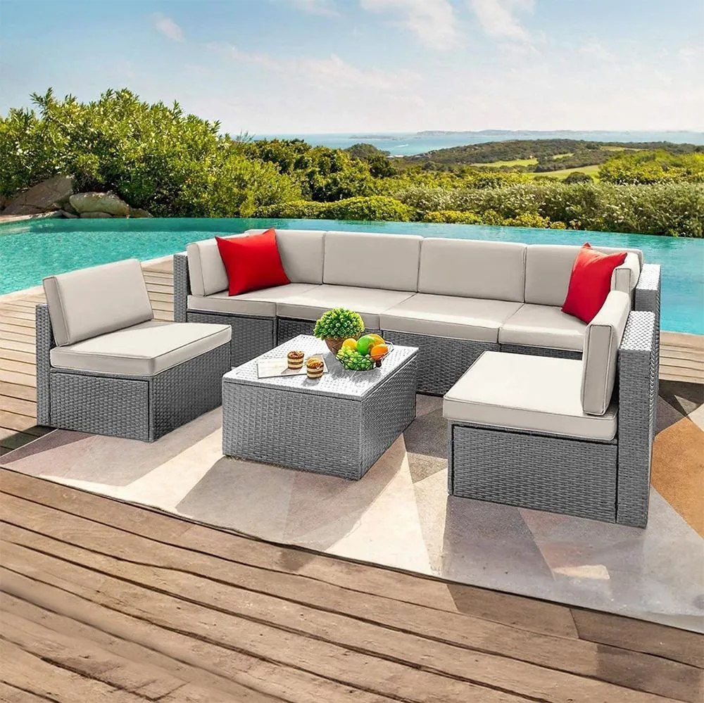 Rodinné posezení, které se vám přizpůsobí – variabilní sestava nábytku Sevilla z PE ratanu. Sestavte si nábytek přesně podle vašich představ.