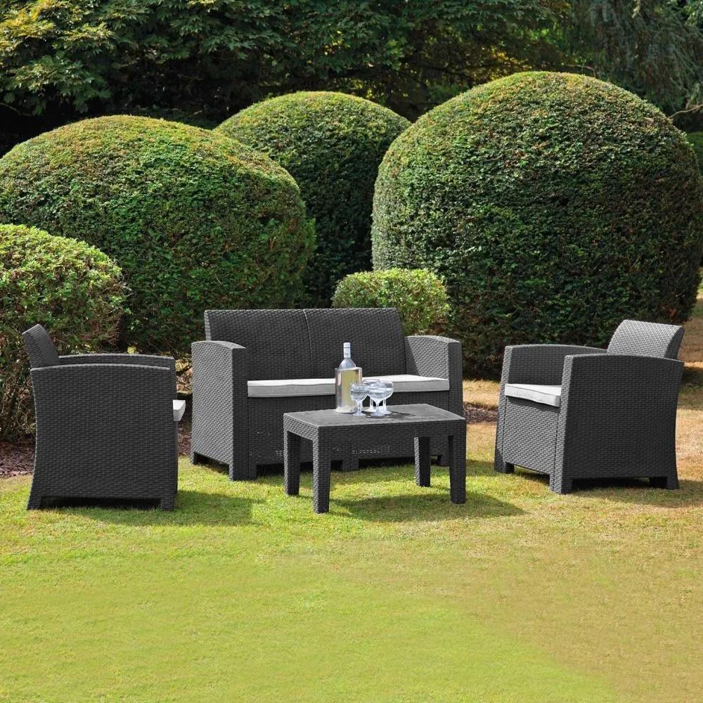 Set je odolný voči nepriazni počasia. Vhodné posedenie na vonkajšie aj domáce účely. Vyrobené z lisovaného plastu v imitácii plochého ratanu. Ideálny na záhradu, terasu, do altánku aj zimnej záhrady.