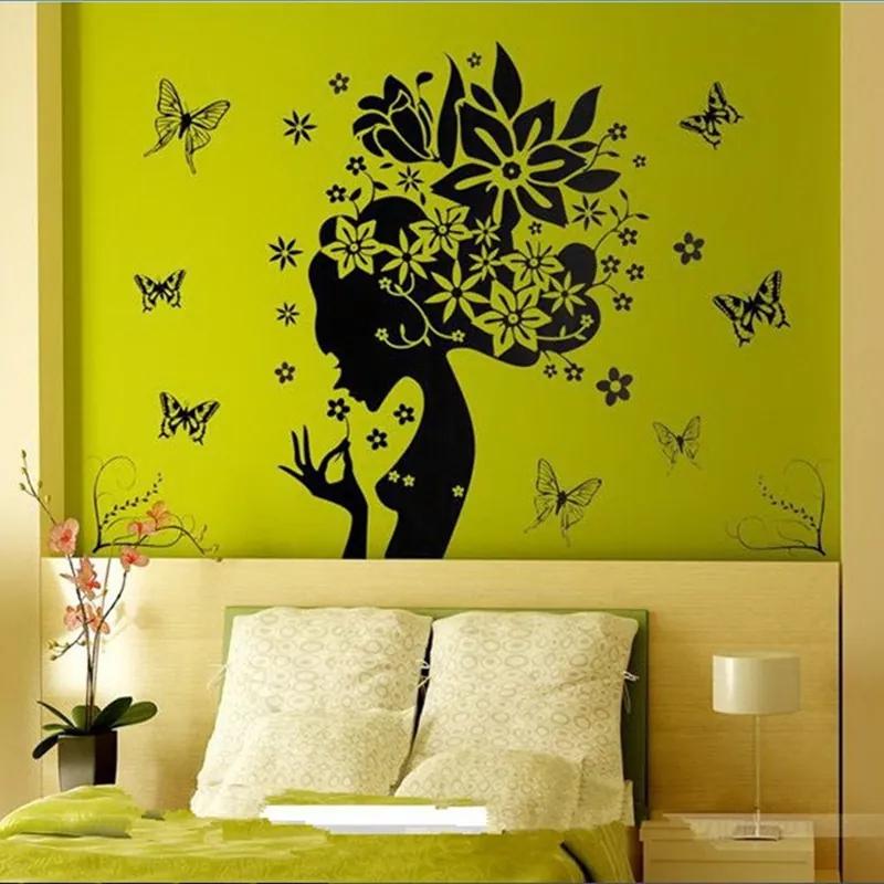 Elegantná čierna samolepka s motívom Dievčaťa držiaceho kvetinu obklopeného motýlikmi sa síce moc nehodí do izby futbalistu a už vôbec nie do garáže alebo dielne, ale v dievčenskom pokoji vynikne skutočne úžasne. Bude pôsobiť romanticky a určite ozvláštni váš interiér. Výslednú veľkosť celého obrazu si môžete prispôsobiť podľa vašej kreativity. Nalepením tapety zároveň zakryjete nedostatky na stene alebo inom opotrebovanom povrchu.