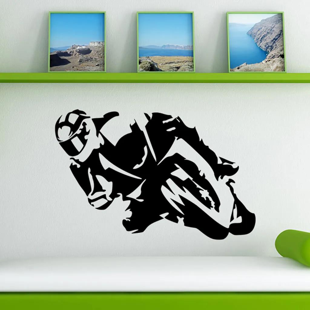 Táto originálna samolepiaca dekorácia na stenu Motorkár sa bude perfektne vynímať na stene každého fanúšika Pretekov cestných motocyklov. Ste motorkár alebo sa Vám len páčia silné stroje, tak Vám táto samolepka určite nesmie chýbať na stene v pracovni, či obývačke.