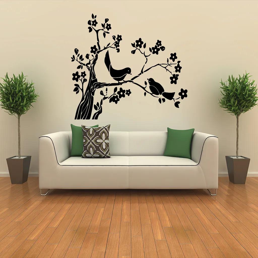 Táto originálna samolepiaca dekorácia na stenu Zamilované vtáčiky bude krásnou ozdobou každej spálne i obývacej izby. Táto samolepka na stenu znázorňujúca dvoch vtáčikov na rande v korune rozkvitnutého stromu, vnesie poriadnu dávku lásky do každého domova. A pretože lásky nie je nikdy dosť, je táto dekorácia jednoducho nutnosťou.