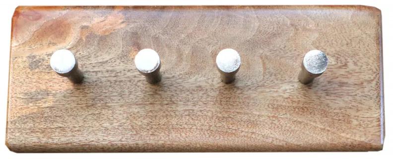 Vešiak na kľúče Hina s 4 háčikmi 25x10x2,5 z mangového dreva